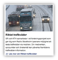 Sedan hösten 2008 till och med 2011 har ett forskningsprojekt vid Kungliga Tekniska Högskolan KTH, MID (tidigare: avdelningen för Medieteknik), arbetat med att ta fram framtidens vädertjänster. Projektet leds av Elevant Katarina. Projektet har bland annat testat en ny typ av vädervarningar och ”riktat” trafikväder via SMS med målgruppen trafikanter.