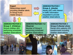 Konceptet har även testats på andra målgrupper, bland annat skolelever åk 2, som observerat väder under schemalagd tid. Forskningsresultaten har visat att även personer med begränsad erfarenhet kan observera väder och ge värdefull input i form av väderdata, med hjälp av den insamlingsmetod som tagits fram för plattformen Shareweather.