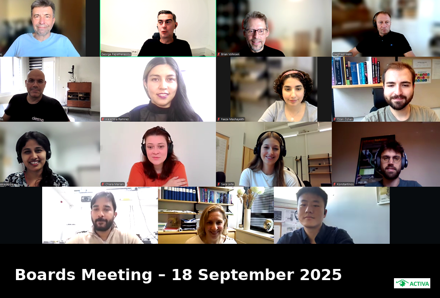 The digital ACTIVA boards meeting took place on 18 September 2025 with the participation of all ACTIVA Principal Investigators (PIs) and Doctoral Candidates (DC). A presentation on the status update of the ongoing periodic report was provided, and DCs were assigned to new Boards in order to improve and enhance the range of their skills.