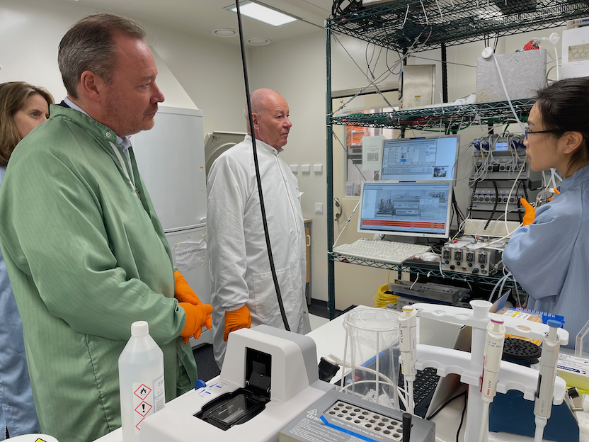 Happy to host a visit from KTH Royal Institute of Technology President Prof. Anders Söderholm, Deputy President Prof. Mikael E. Lindström and Dean of CBH Faculty Prof. Amelie Eriksson Karlström in the lab of Veronique Chotteau. Here looking at perfusion bioreactor culture of AdBIOPRO, Competence Centre for Advanced Bioproduction at the Department of Industrial biotechnology.