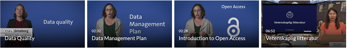 I bibliotekets kanal i KTH Play kan du se bibliotekets samtliga filmer. De är taggade utifrån ämnen och har alltid en beskrivande rubrik och informationstext. Filmerna är delvis uppdelade i olika "playlists" utifrån olika ämnen.