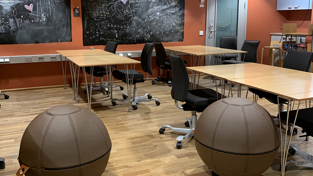 Rummet har utrustats med 15 nya bekväma kontorsstolar, 2 whiteboards på hjul och tre sittbollar. Allt detta har köpts in som en direkt följd av hur studenterna röstat och kommenterat. Vi jobbar fortfarande på att förbättra eluttagen och annan elektrisk utrustning, och förhoppningsvis kommer borden snart att vara flexibla både vad gäller höjd och möjlighet att flyttas runt i rummet.
