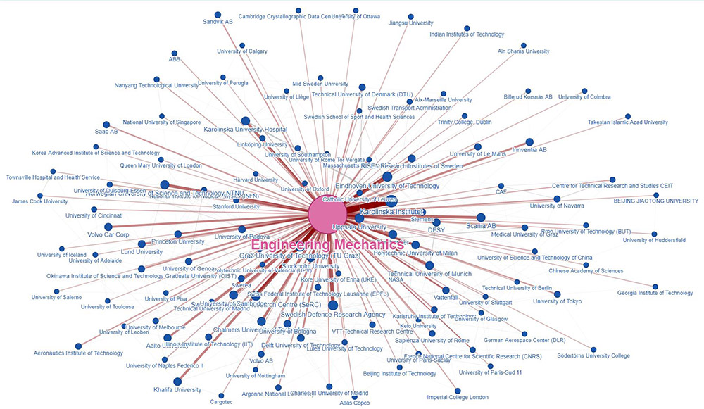 KTH Research Information är tänkt som ett komplement till ÅBU, för fördjupad och mer finfördelad analys. Denna tjänst möjliggör filtrering på samarbetsländer- och organisationer för analys av publicering och citeringsgenomslag på såväl skol- som avdelnings- och gruppnivå. Till skillnad från i ÅBU uppdateras data även under året. Tjänsten bygger på data från Web of Science, Bibmet, KTH:s personalsystem samt projektdata från CASE (se definition under datakällor ). Här kan du även hitta nätverksbilder över sampublicering i världen och klicka runt i kartvyer. För att komma åt denna tjänst behöver du vara inloggad på KTH. Tjänsten är under löpande utveckling och förbättringsåtgärder genomförs kontinuerligt i användargränssnittet.