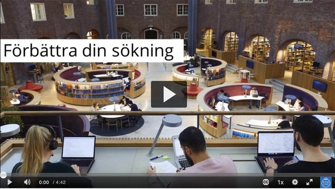 I videon nedan får du se hur man skapar en sökning genom att utgå ifrån en frågeställning och sedan använda sig av nyckelord. Om du föredrar text framför video kan du scrolla lite längre ned på sidan där du kan läsa om söktekniken som används i videon.
