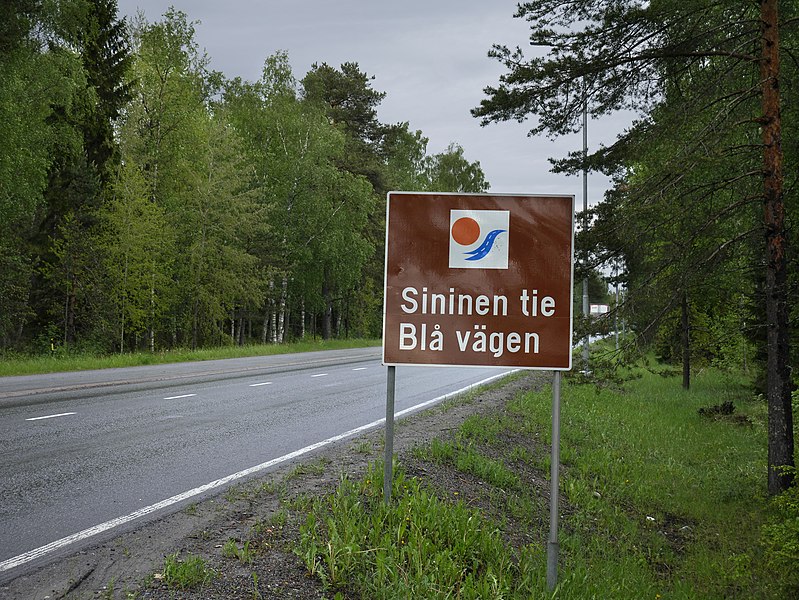 Blå vägen går nu från Mo i Rana vid den norska atlantkusten genom Västerbotten i Sverige, Österbotten i Finland och till Pudozj nära Petrozavodsk (Petroskoj) i Ryssland. Numer betraktas vägen vanligen som en turistväg men flera intressen låg bakom dess tillkomst. Initiativet till att bygga vad som senare blev Blå vägen togs på 1950-talet men det fanns färdvägar och marknadsplatser längs sträckan långt tidigare. Vägen mellan Umeå och Lycksele byggdes under första delen av 1800-talet. Blå vägen invigdes 1964 och blev i början av 1970-talet en europaväg. Namnet Blå vägen anspelar på att vägen går längs med Umeälven i Sverige men det lär i själva verket ha tillkommit efter att vägen markerats ut på en karta med en blåfärgad penna.