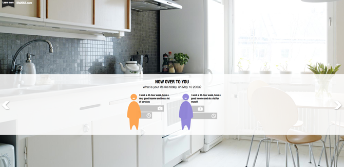 What we see before us is some kind of digital experience, or game, where a user by her/himself or in a group can explore what a sustainable lifestyle could be like. The aim is to make this ‘game’ available on the internet and also to log how users interact and what choices they make. In order to get feedback for further development we strive to create a prototype that is open, inviting and accessible for a multitude of different users. The project Prototyping the Future is however best looked upon as a prototype in itself, a first attempt to combine design methods, future studies, environmental systems analyses with prototyping methods and digital tools for design.