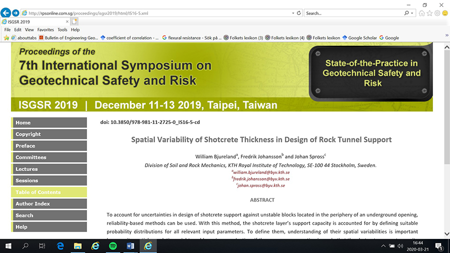 Bjureland, W., Johansson, F., Spross, J. (2019) Spatial Variability of Shotcrete Thickness in Design of Rock Tunnel Support. Proceedings of the 7th International Symposium on Geotechnical Safety and Risk (ISGSR 2019).