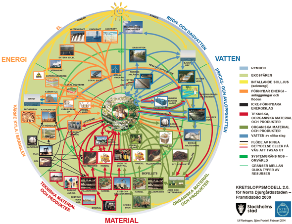 A new report by Ulf Ranhagen and Björn Frostell departs from the Hammarby Model, an eco-cycle model used in Hammarby Sjöstad, Stockholm’s most well-known environmental project to date. Their “eco-model 2.0.” attempts to give an enhanced picture of the connections and synergies between resource flows.