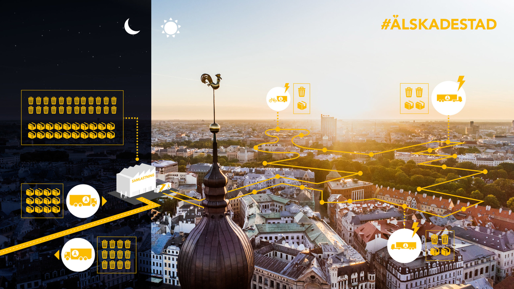 InterCityLog is a unique solution where goods and recycling can be co-distributed in cities. The solution included two heavy diesel vehicles for goods and recycling is replaced by a smaller on. The energy efficiency is improved by cooperation in several steps in the supply chain. InterCityLog is demonstrated and commercialized through "Älskade Stad" .