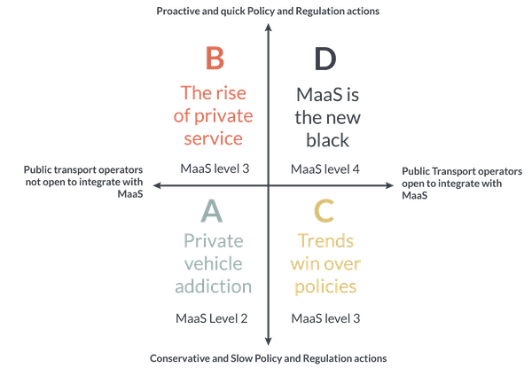 Since the project aims to provide the potential values of MaaS services and evaluate their impact, a scenario analysis approach has been employed. The scenarios assume that: