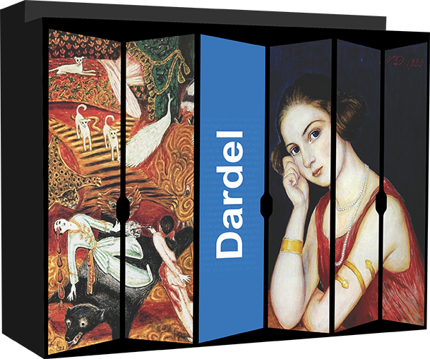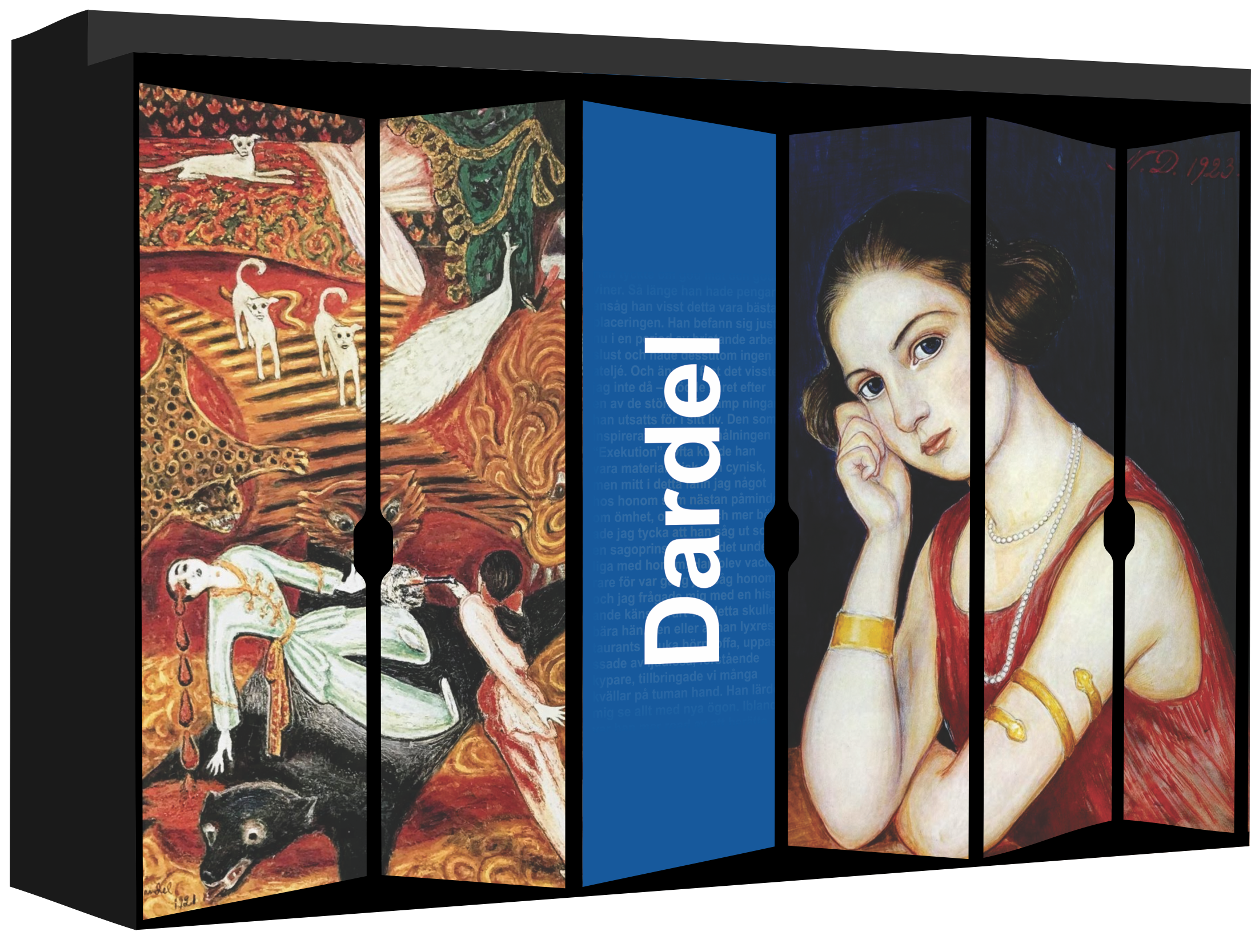 The images on the door panels are a portrait of Thora Dardel by Nils Dardel and “Crime of Passion”, another painting by Nils.