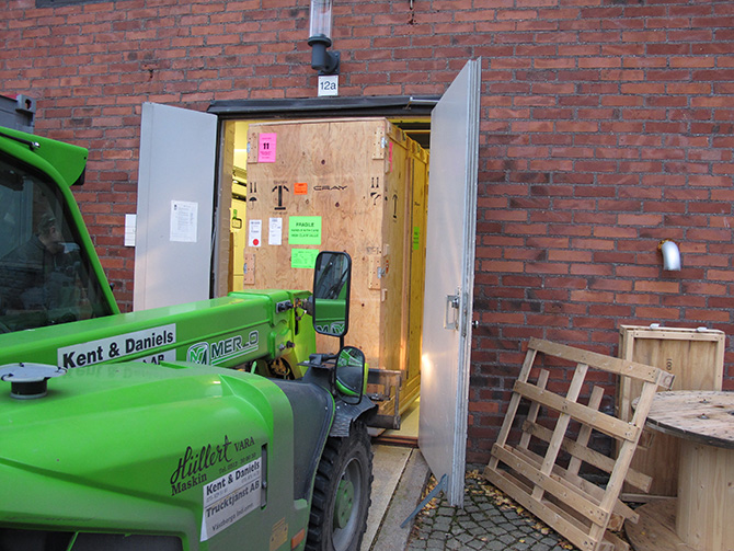 In October 2014 PDC is taking delivery of the most powerful supercomputer to date for academic research in the Nordic countries. The system is a Cray XC40 named Beskow after the well-known Swedish children's author and illustrator, Elsa Beskow. The new system has a peak performance close to two petaflops, making it over six times faster than PDC’s previous flagship system, Lindgren. After the installation of the system in October (which you can see documented in photos below), there will be a period of preliminary testing, with public access for research purposes expected to be available from the 5th of January 2015. Selected user groups will be invited to test the system earlier, most likely starting towards the middle of November 2014.