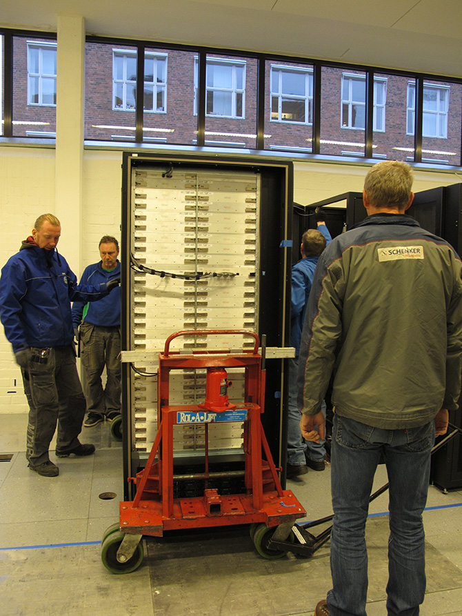 They say Rome wasn't built in a day, but look how quickly things progressed... 13: 23 All cabinets for both rows of Beskow are in place in the PDC computer hall
