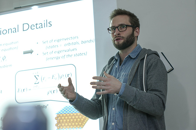 Five speakers at the postgraduate and postdoctoral levels gave very interesting talks about their research - impressive work indeed! Joakim Halldin Stenlid went first and talked about his research based on electronic structure calculations of surface reactivity. Two talks followed on numerical simulations of airflow: first Elektra Kleusberg presented her research on wind turbines using direct numerical and large eddy simulations, and then Prabal Singh Negi talked about simulations of a pitching airfoil at high Reynolds numbers. After that Petter Johansson discussed his results from large-scale classical molecular dynamics (MD) simulations on water droplet spreading on surfaces, and finally Henrik Öberg talked about the fragment molecular orbital theory method and its application to enzyme catalysis.