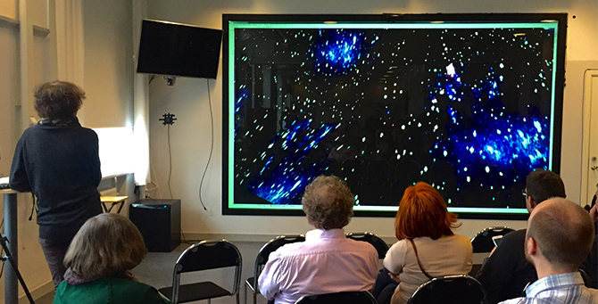 Recently Gert Svensson (from PDC) and Leif Dahlberg (from KTH Media Technology and Interaction Design) arranged a retrospective seminar about the VR-cube and its use by artists. The seminar was held on the 3rd of March 2016, and aimed to summarize the ten years of experience of the scientists and engineers collaborating with artists on projects involving the VR-cube. The seminar also had a secondary purpose, which was to look forward and discuss how science and art could collaborate in the future. Leif Dahlberg is responsible for creating a Centre for Art, Technology and Design, and also a doctoral program in these areas.