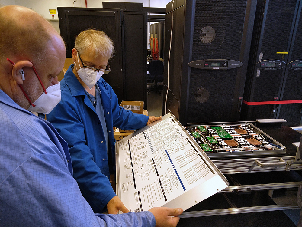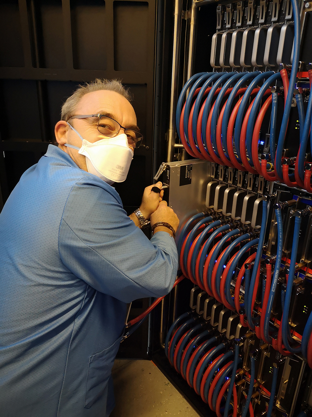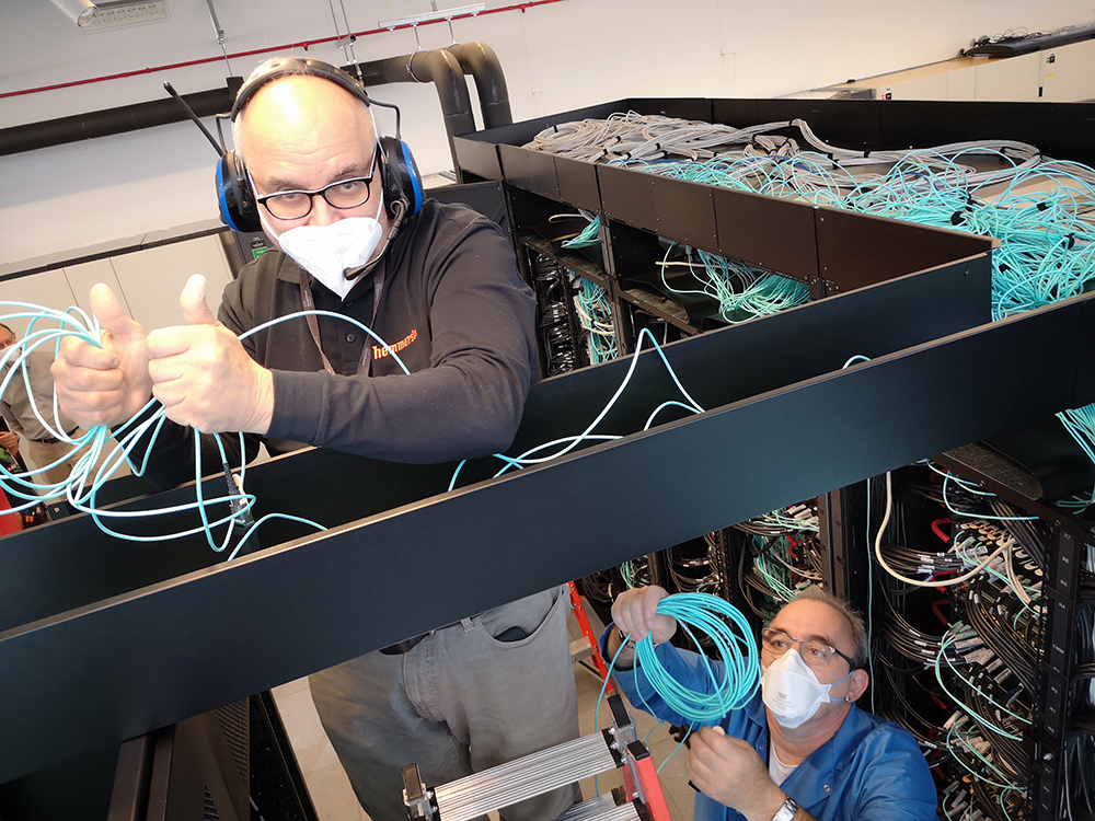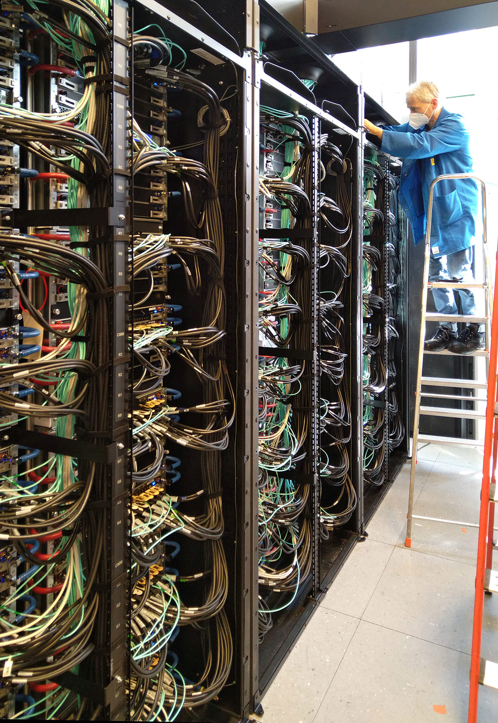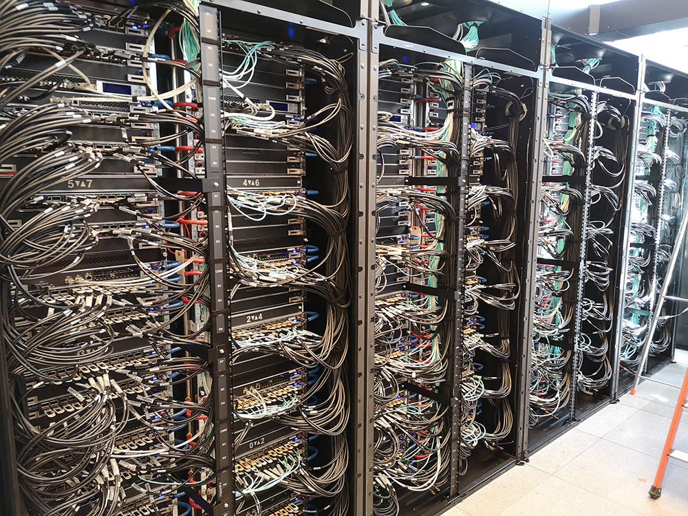 You can see the electrical connections to the compute racks being completed and the system being powered up yesterday.