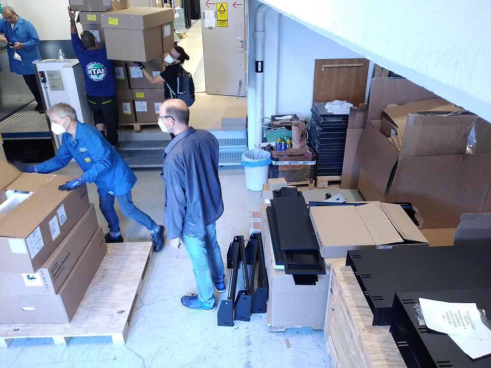 Work on Friday the 5th of August focused on finishing the connections for the vitally important network of cables (known as the Slingshot interconnect) that enable the compute nodes to exchange data at ultra-high speeds.