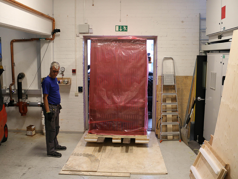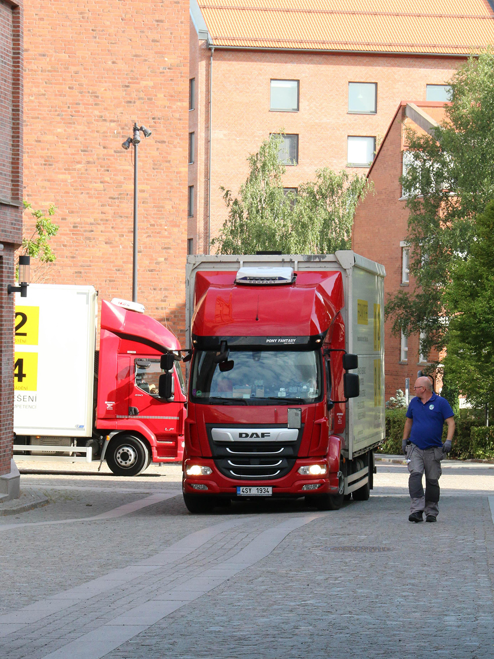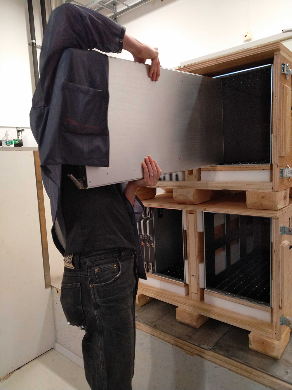 The first batch of trucks arrive at KTH: they carry the precious Dardel cabinets, as well as some of the special purpose-made tools needed to assemble them.