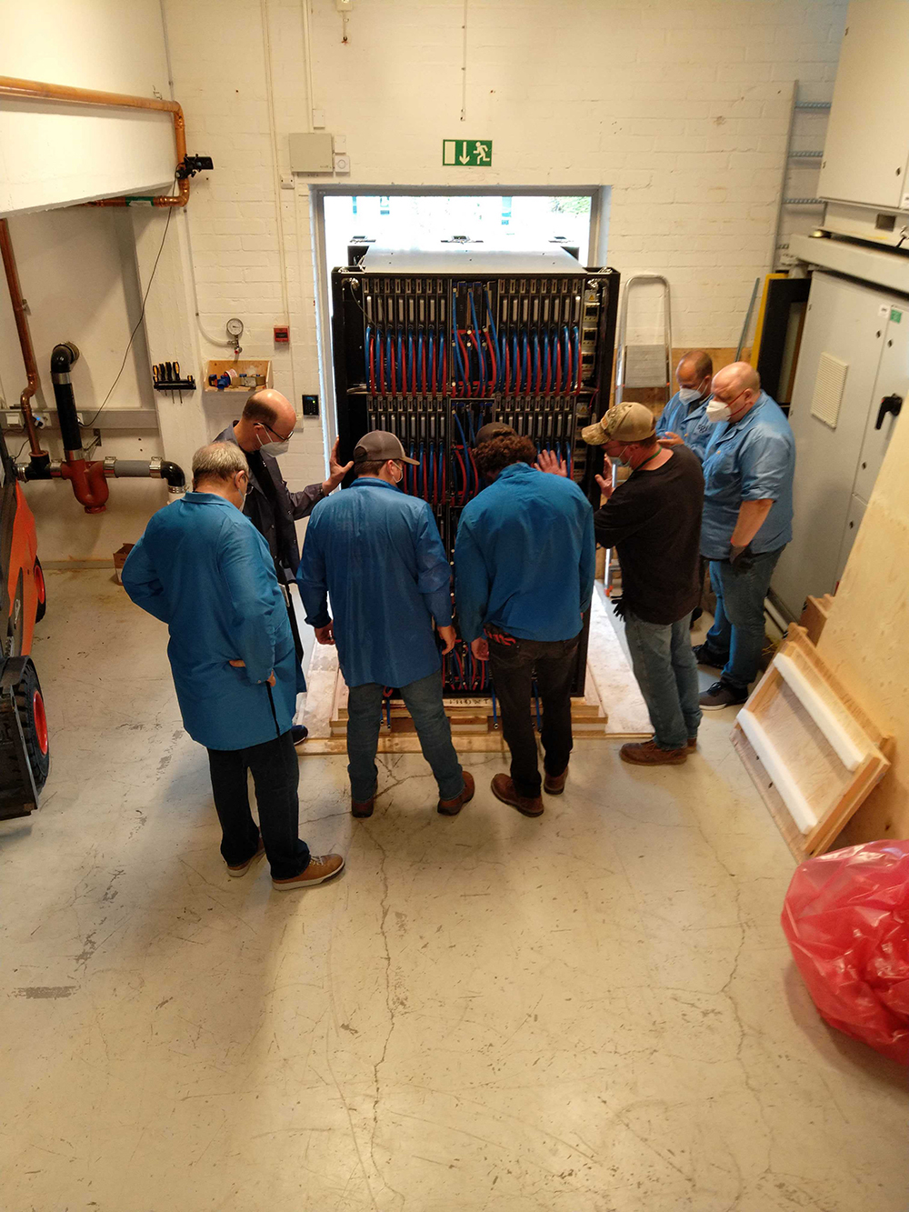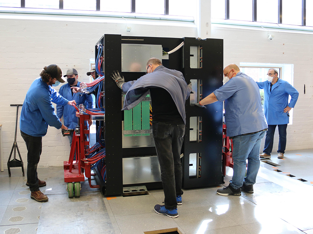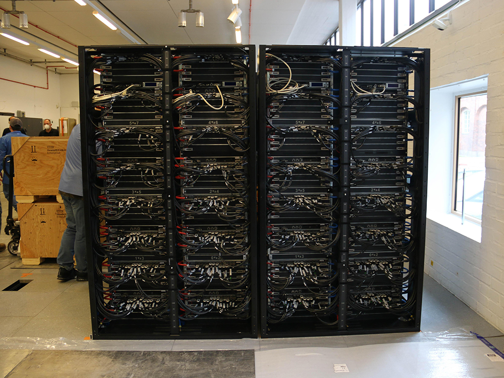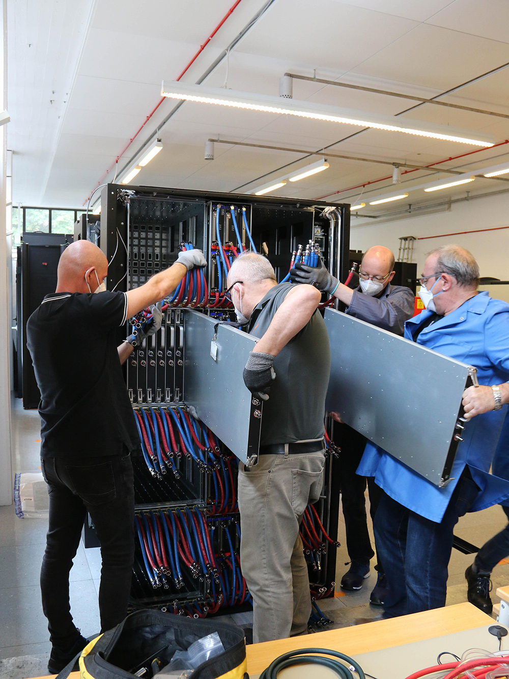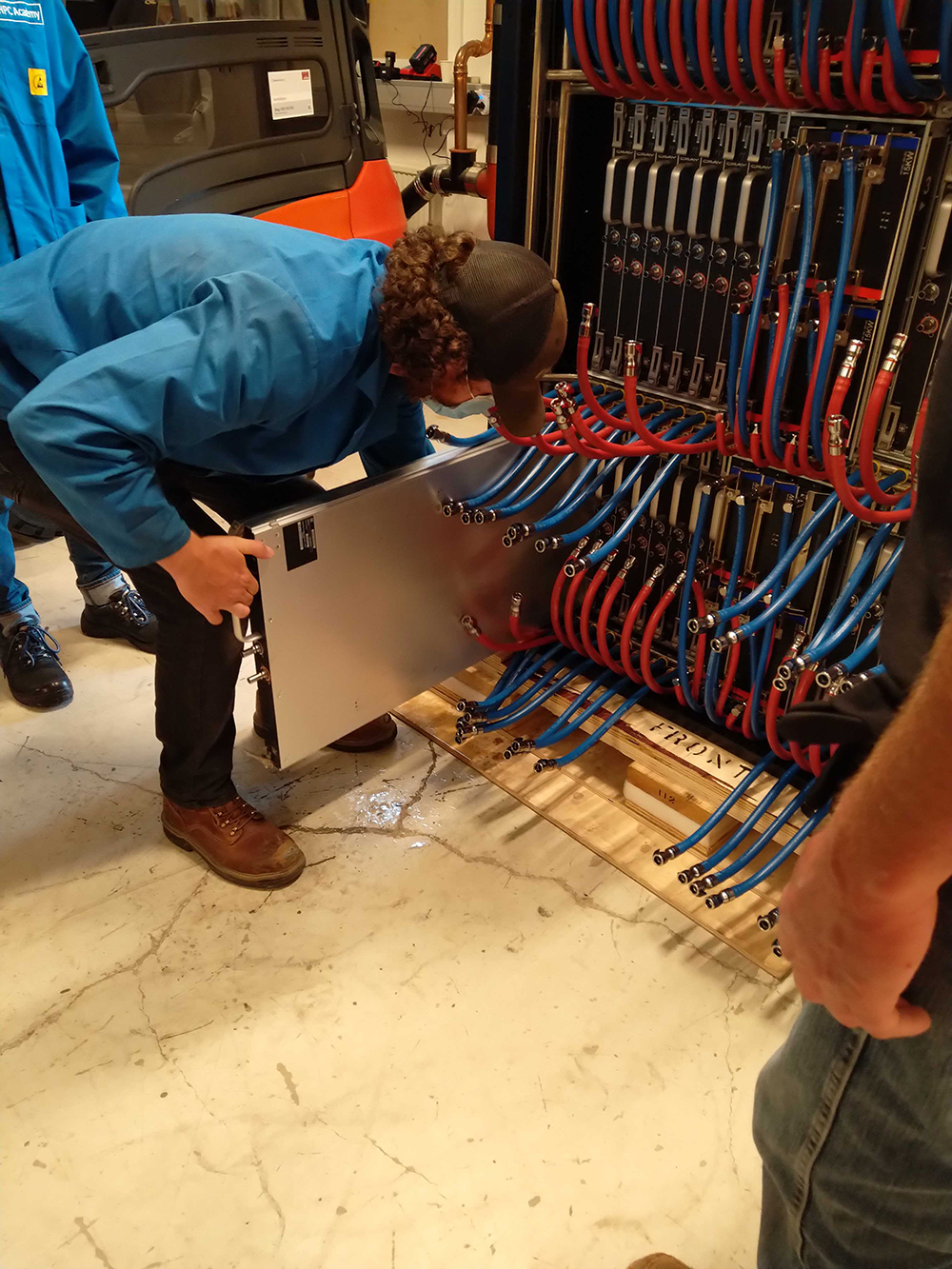 At this point the special holder for the compute blades is shifted into the computer hall...