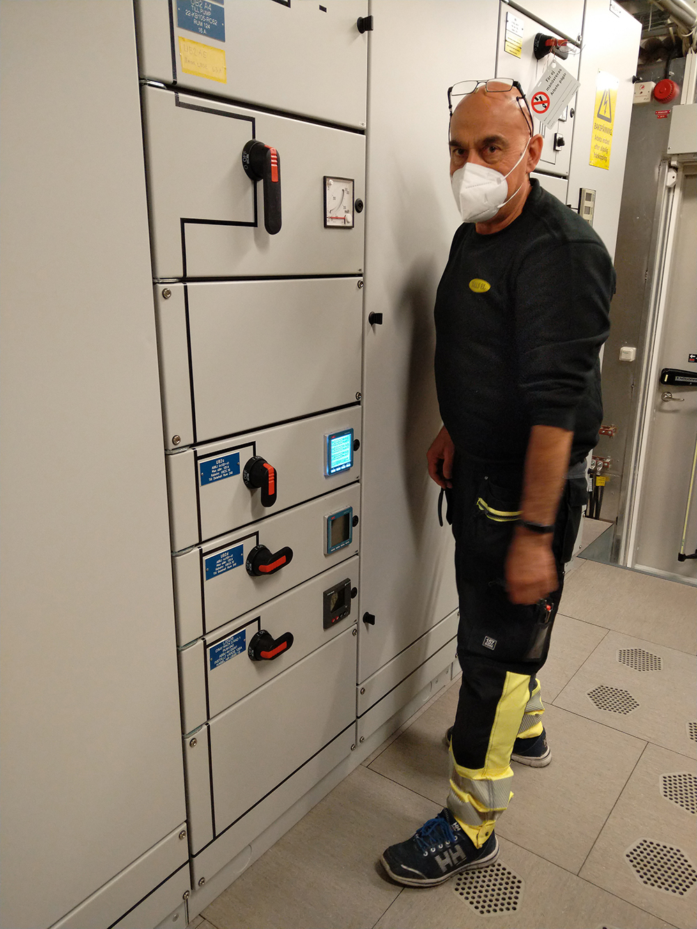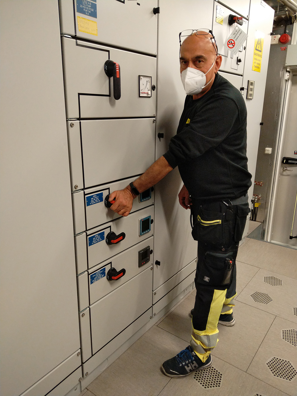 There are a lot of cables, and the electrician skilfully and carefully navigates his way around them all while completing the very last electrical connections.