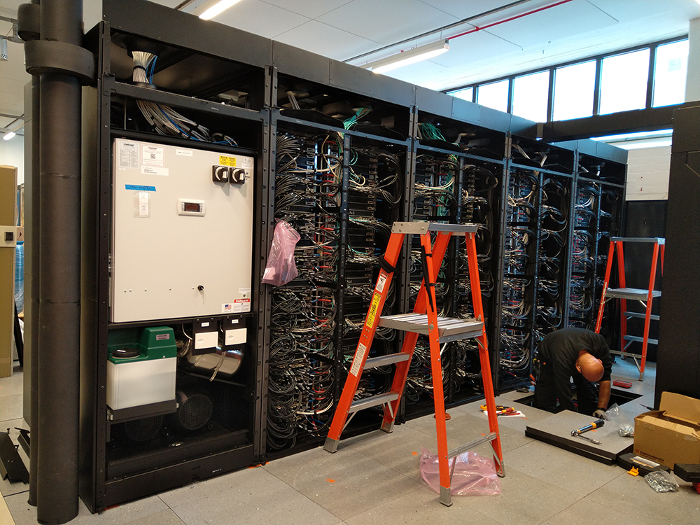 A lot is happening to the compute nodes today: doors are being installed on one side...