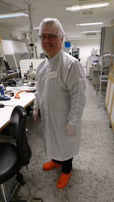 The Nanolab is a "user friendly" cleanroom that maintains a particle count (class 10000, close to 1000) typically an order of magnitude lower than the air in the surrounding building. This is maintained via a number of precautions: