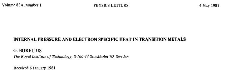 To commemorate Gudmund Borelius distinctive achievements for engineering physics, a Borelius medal was established in 2000 and is awarded annually.