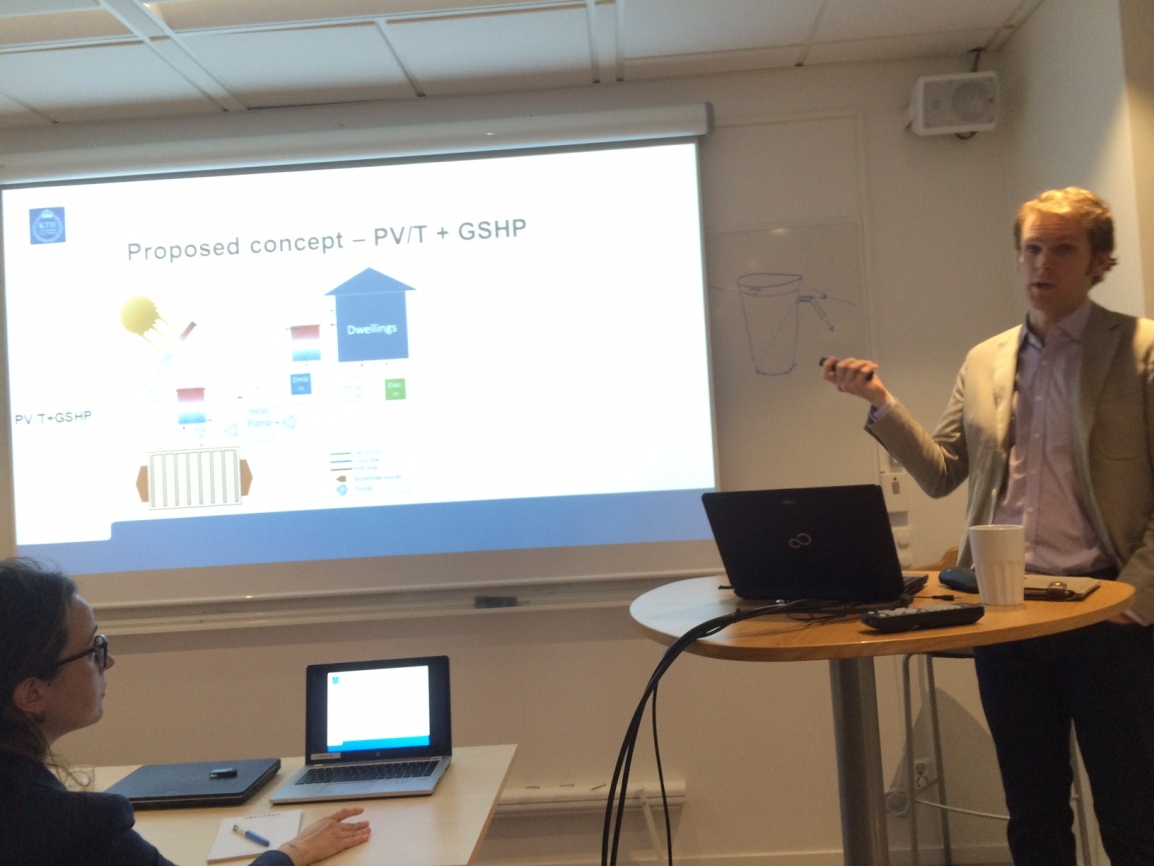 Nelson Sommerfeldt, also PhD student at KTH, presented part of his work and the motivations for thermal storage in support of solar photovoltaics in Sweden, as well as the potential of one of the ideas proposed in the latest EFFSYS Expand call, the combination of ground source heat pump systems with solar thermal and solar photovoltaics. See Nelsons presentation here GeoSeminar-PVT+GSHP.pdf (pdf 924 kB)