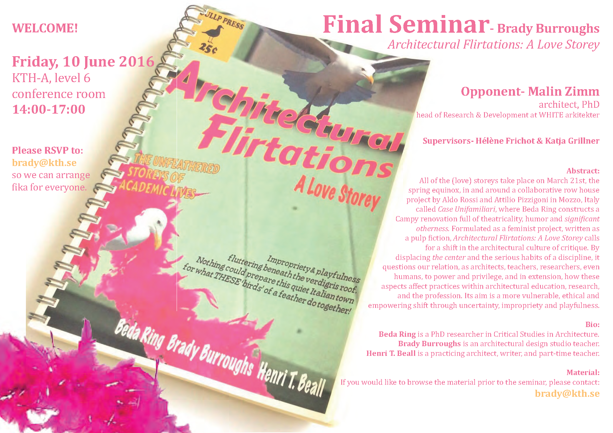Brady Burroughs "Architectural Flirtations: A Love Storey" (Final seminar 10 June 2016)