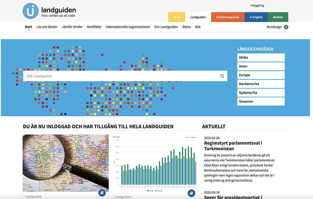 The Swedish Institute of International Affairs (UI) is an independent institute and a platform for research and information on international relations and foreign policy. KTH Library offers access to their database Landguiden, written in Swedish.