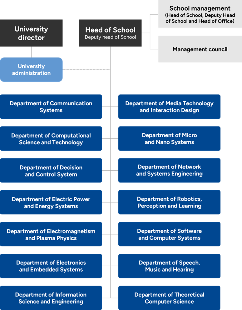 The School of Electrical Engineering and Computer Science is one of five schools at KTH. We conduct education at four department and research at 15 divisions. There are also a number of research centres and environments connected to the school.