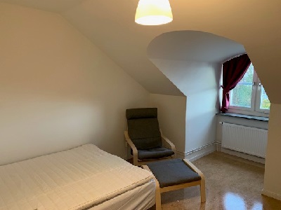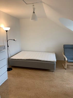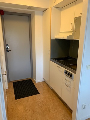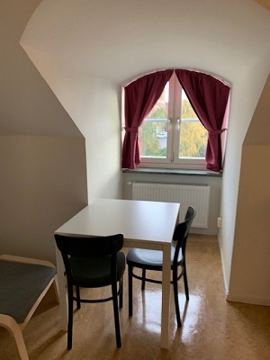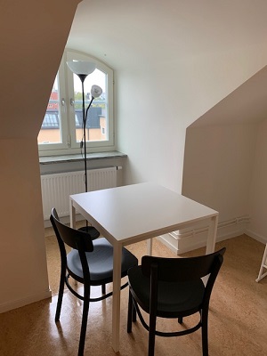 The apartments are on the top floor of Brinellvägen 6. These are simple furnished apartments with basic kitchenettes and slanted ceiling.