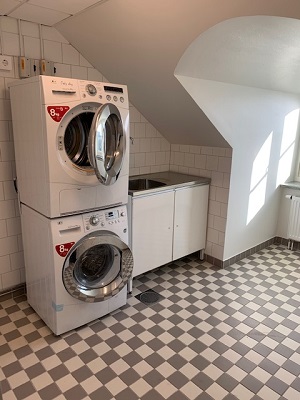 There is a laundry room which you share with the other tenants on the floor. It is the the silver door located to the left of the elevator. Your black tag will open the door. You are welcome to use the laundry room when you want, please be considerate of others and not block a whole day. If there is a problem, always inform KTH by using the Fault report form.
