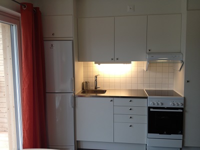 Refrigerator, freezer, stove and oven plus pots and pans are provided in the apartment. Dishes and silverware are also included. There is one bed 90 cm in the 21 sqm apartments or 140 cm in the 25 sqm apartments. Bedside table, kitchen table and two chairs are provided.