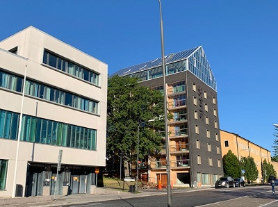 "Hemmet" means home in Swedish and is located on KTH Campus. There are larger studios suitable for couples, and smaller studios for one tenant. Each apartment has its own kitchen and bathroom. They also have a glassed-in balcony or a small outdoor space if they are located on the ground floor. There is an elevator in the building, and a small storage closet next to each studio.