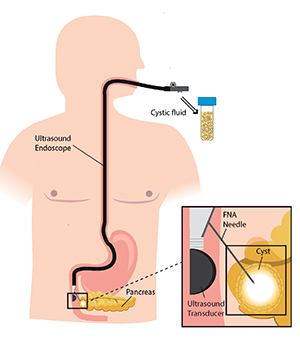 In a potential step forward for early pancreatic cancer diagnosis, a miniaturised brush was successfully tested as a possible technique for loosening cells from the walls of pancreatic cysts. If proven safe to use, the technique could dramatically increase the number of cystic cells available for analysis, a key advance given the scarcity of cells in cystic fluid drawn with a needle alone.
