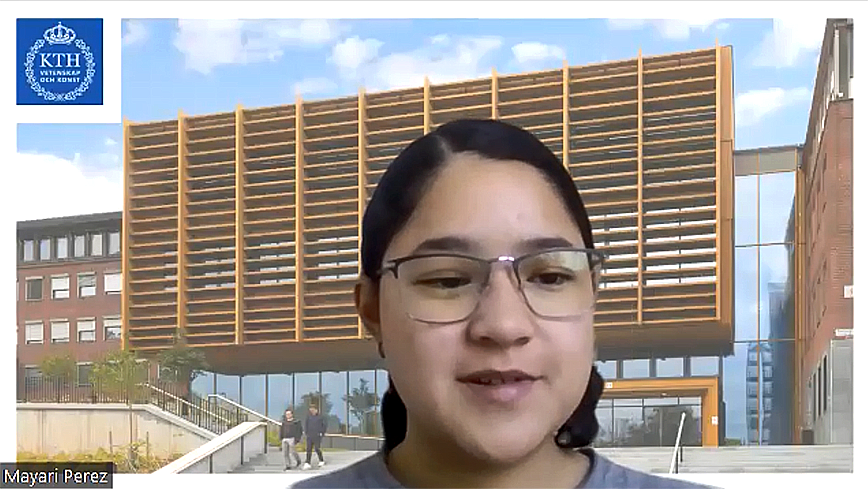 “I was on the other side so I know how important it is to get the student’s perspective,” says Mayari Pérez Tay shown here in a zoom session with an admitted student. She is one of the 133 KTH master's students who have made individual calls to students admitted for the autumn term at KTH.