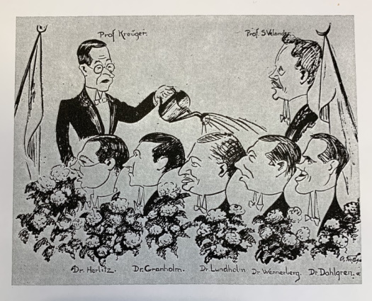 In 1927, KTH was granted the right to confer degrees upon doctors of technology. KTH conferred its first doctor’s degrees in technology on 25 May 1929 in the Great Hall at the Royal Academy of Music. The five promovendi receiving their doctoral rings and certificates were engineers Fredrik Dahlgren, Hjalmar Granholm, Ivar Herlitz, Ragnar Lundholm and John Wennerberg. The professorial inauguration of Sten Velander, the newly appointed Professor of Electrical Engineering, was held at the same time. The next time doctor’s degrees were conferred was not until 1943, when honorary doctors of technology were appointed at KTH for the first time. The first woman to receive a doctorate at KTH was Katarina Kraft Ahnlund, who received her doctorate in 1956 with her thesis entitled Transmutations of light nuclei: Experimental determinations of reaction energies, atomic masses and angular distributions. She thus became the first woman in Sweden to receive the title of Doctor of Technology. More information about her is available here .
