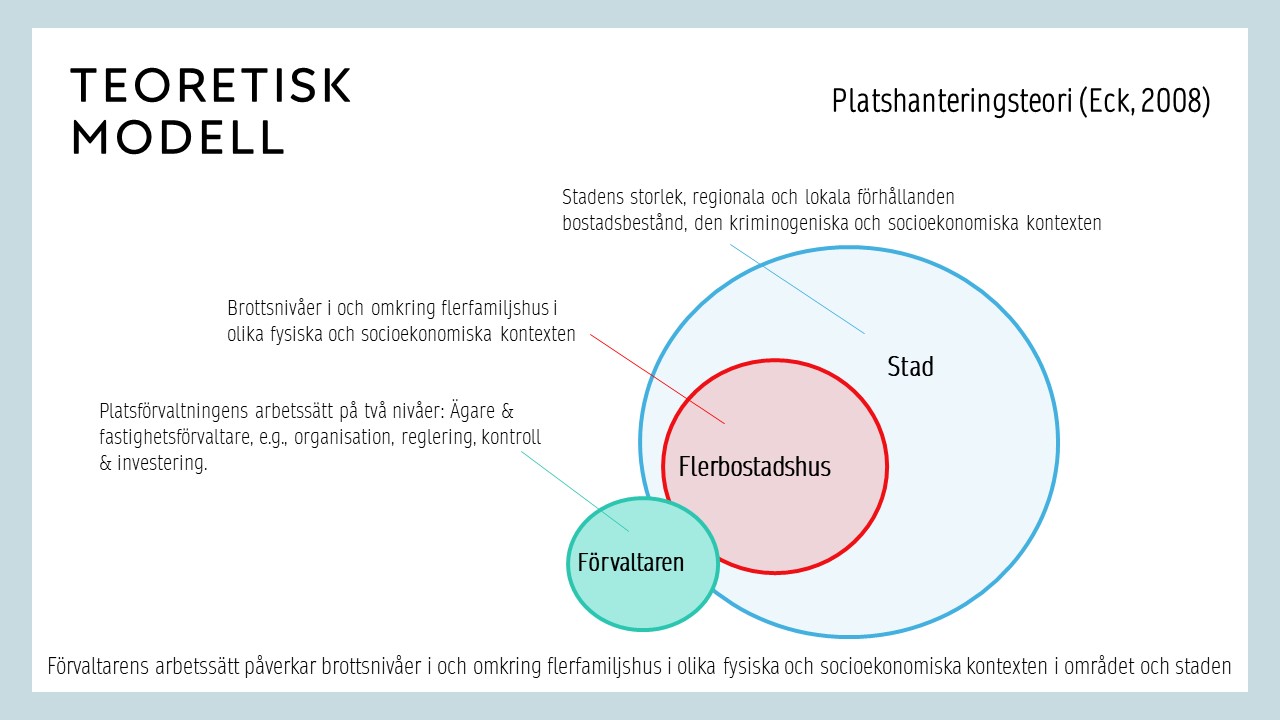 The purpose of this study is to investigate the importance of place management for safety in residential areas. With the support of situational crime prevention principles and place management theory, we use both quantitative and qualitative methods to first identify apartment buildings with high and low crime concentrations and investigate which factors cause the differences in crime. Through interviews with property owners and surveys with property managers, we then examine whether and how different forms of place management methods affect the criminogenic and safety conditions of these areas. We search for concrete patterns that can be generalized to other municipalities of varying sizes in the rest of Sweden.