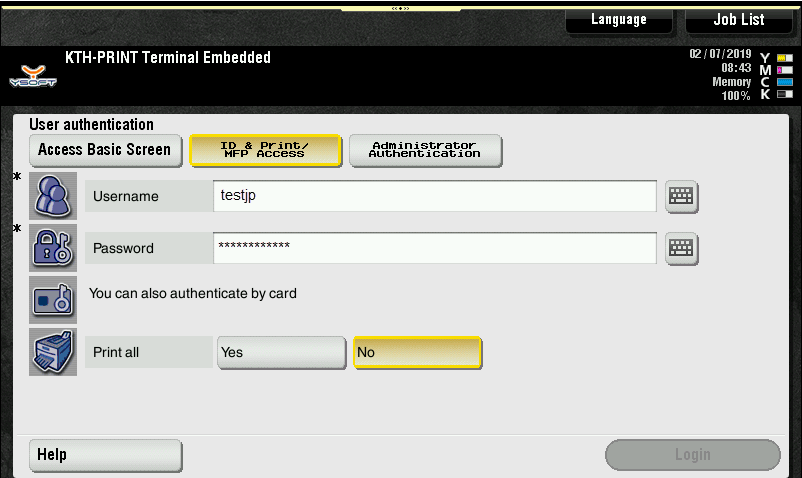How to log in to the printer