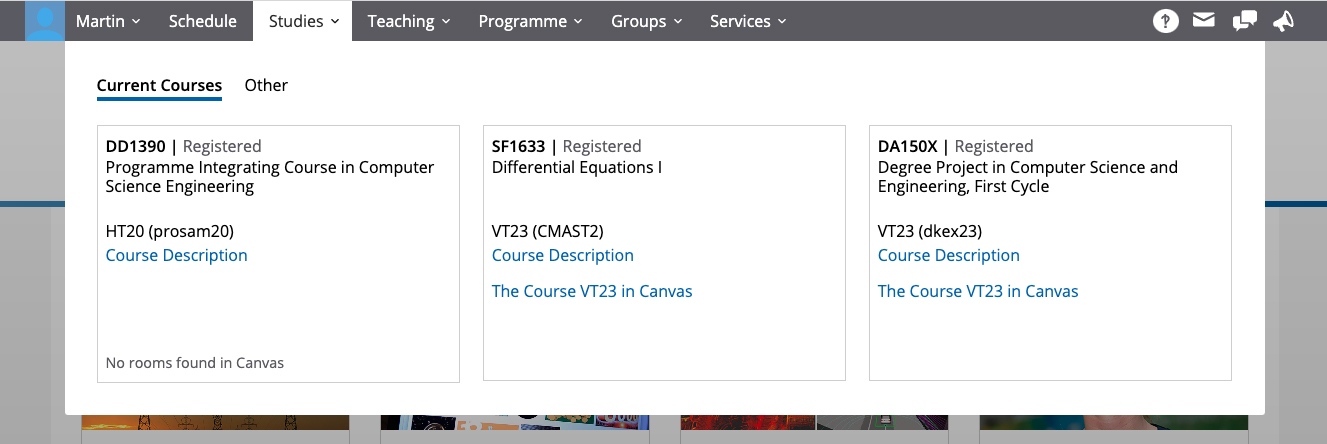The personal menu, which you access when you log in to kth.se, will be updated on 3 May. The updates aim to meet the needs expressed by students and teachers.