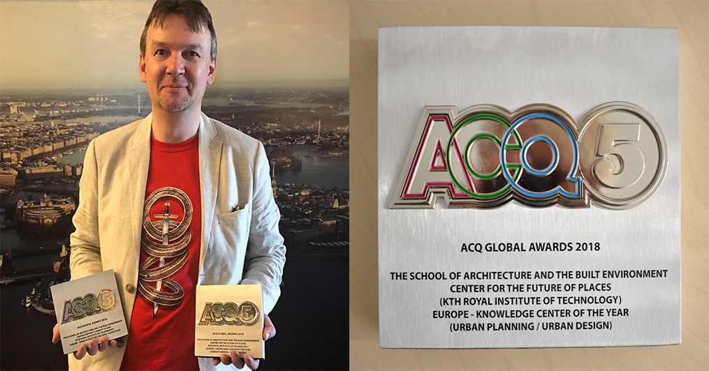 The Centre for the Future of Places is honoured to receive the ACQ Global Awards 2018 in the category of "Europe - Knowledge Center of the Year, Urban Planning/Urban Design" and director Tigran Haas is delighted to win the category of "Europe - Game Changer of the Year".