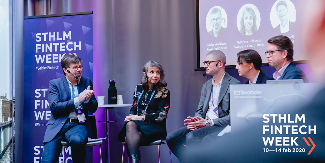 Niklas (to the left on the picture) was moderating a discussion about the E-krona project from The RIksbank with participants from the Riksbank, The Swedish Trade Federation, The Swedish Bankers’ Association and the Swedish Competition Authority during Stockholm Fintech Week on February 10, 202