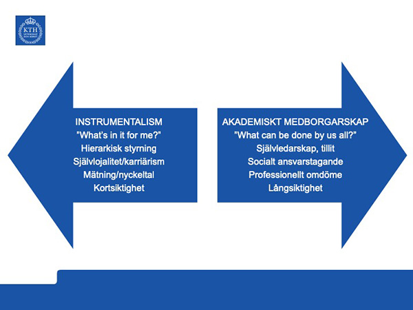 The 25th January, Monica Lindgren and Johann Packendorff from INDEK presented their research in the PERFA-project (PERFormance-based governance in Academia) at the Swedish Ministry of Education and Research. They pointed at two parallel developments in performance-based governance at department level; one instrumental and one supporting the development of ’academic citizenship’. Many of current performance appraisal models operate in an instrumental fashion; they support and reinforce tendencies towards individualism, careerism and shortsightedness, and imply that actors at all levels base their action in what is effective for them individually. This is not always entirely a negative development, but it can easily get out of hand and lead to unforseen and unwanted consequences.