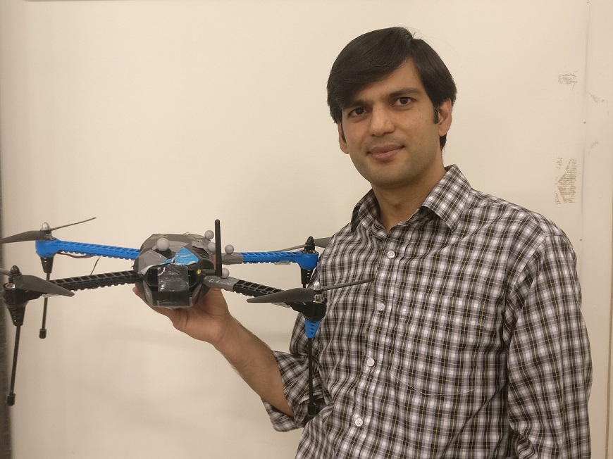 In this project, a predcitive control scheme is derived for the navigation of multiple quadrotors in the constraint environment based on the quadrotor’s model obtained using Newton-Euler method. Nonlinear model predictive control problem is first formulated for the decentralized and autonomous navigation of multiple quadcopters subject to constraints. The constraints are in the form of static and dynamic obstacle avoidance, and limits on the states and inputs. The static and dynamic obstacle are modeled as sphere while formulating Nonlinear MPC problem. The quad-rotor model is then linearized and system is converted to mixed logical dynamical (MLD) system which is described by the linear dynamical equations subject to linear constraints involving real and logical variable. The hybrid MPC poblem is then formulated subject to MLDs, where the constraints are linear and obstacles are modeled as poy-hedral sets. The performance of, NMPC is analyzed through simulation and MPC scheme is analyzed by simulation and verified by performing indoor experiments.
