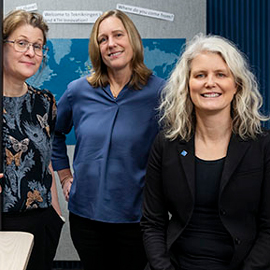 En målbild för verksamhetsstödet riktat till forskare är att skapa tydlighet kring hur forskarna får tillgång till stödet och utveckla både befintliga tjänster och hitta nya utvecklingsområden. Maria Haglund, Maria Gustafson och Lisa Ericsson leder arbetet.