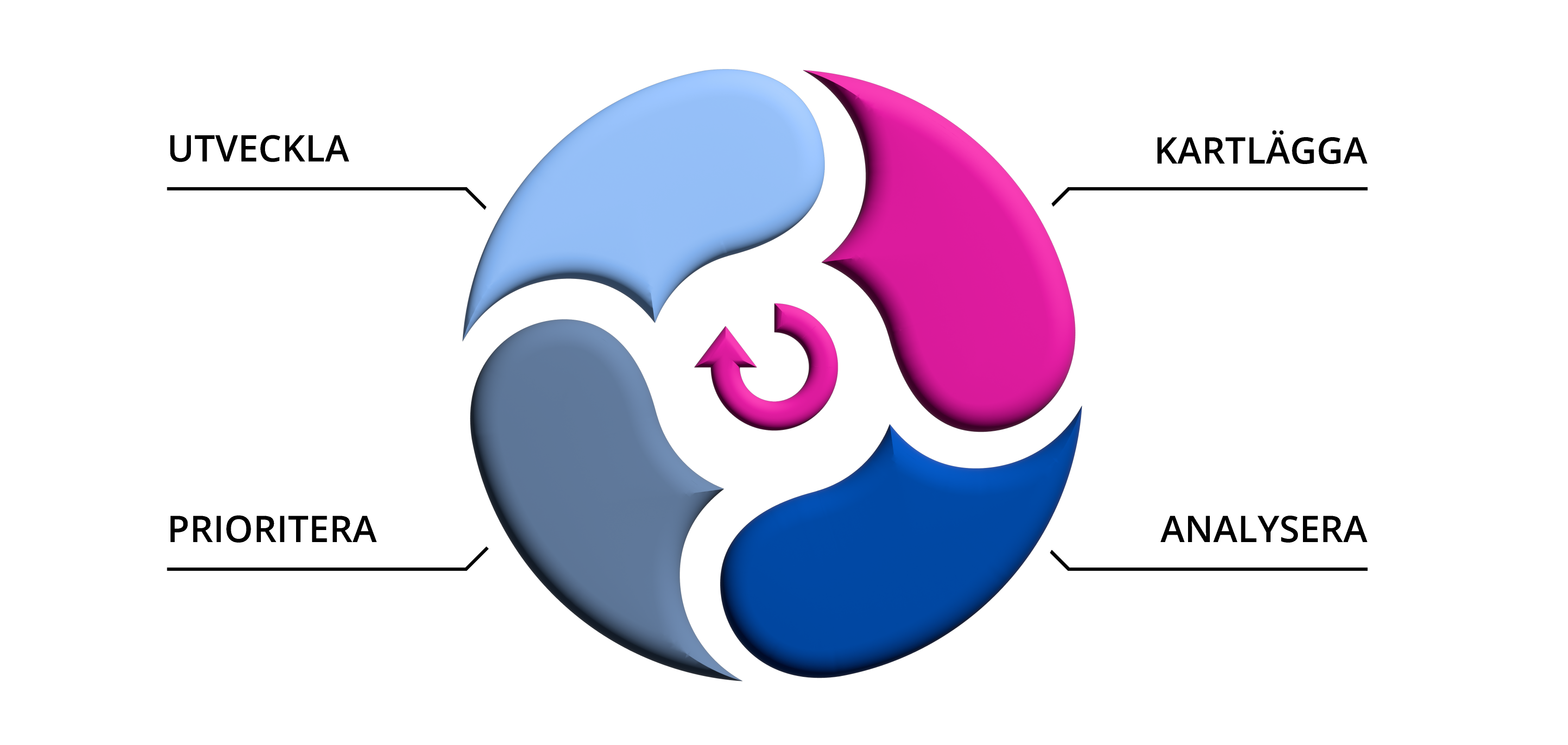Samgåendet genomförs i fyra steg som upprepas i flera varv under projektets gång: kartläggning, analys, prioritering och utveckling.