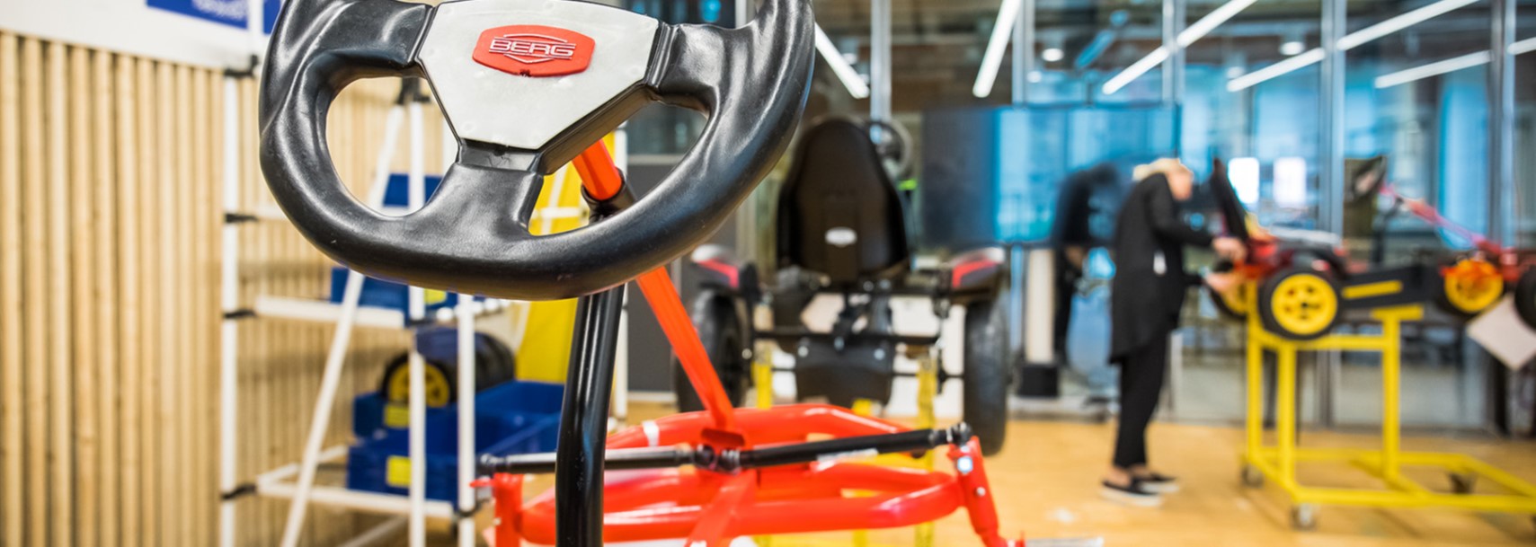 Andreas Bohlin som jobbar på Lean centrum instruerar kursdeltagarna i trampbilsfabriken. Publicerad 2025-09-05Vi är glada att meddela att Trampbilsfabriken nu har flyttat in i våra lokaler på KTH, Brinellvägen 68 i Stockholm!
