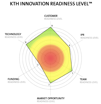 Modellen visualiserar de framsteg en startup gör i sex viktiga fokusområden: kund, affärer, teknologi, IP, team och finansiering.