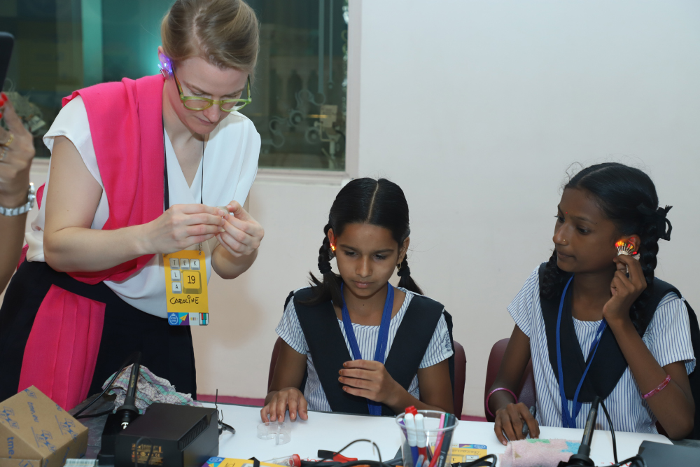 Teklafestivalen engagerar och ger ringar på vattnet på olika sätt på de olika destinationerna, konstaterar Sanna Cedergren. I Indien, dit SI och KTH åkte i höstas tillsammans med Kungen och Drottningen, samarbetade festivalen med myndigheten NITI (National Institute of Transforming India). De har något som de kallar tinkering labs, små makerspaces, på 4000 skolor i hela landet. Det är inte så många tjejer som kommer dit och de vill gärna jobba mer med den målgruppen. Några av tjejernas lärare var med på festivalen och lärde sig om Teklas metod och pedagogik för hur man jobbar med tjejer i Teklas workshops, hur man inspirerar och skapar en trygg miljö där de kan utforska teknik på sina villkor.